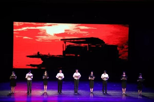 党日活动之红色文艺作品汇演,集中展示了学校近年来在艺术创作中涌现的主旋律艺术作品,由“历史记忆”、“时代新声”、“起航未来”3个篇章组成。戏剧系党总支选送,将越剧融入现代元素的《江姐·热血染红满天云》,反映了共产党人在生命危急关头,用实际行动践行对信仰的追求和坚守的原创小品《别》;音乐系党总支选送,歌颂抗日战争时期民族英雄的板胡独奏《地道战》,表达共产党人的初心和使命的男女声二重唱《不忘初心》,歌颂中华民族迎来从站起来、富起来到强起来的伟大飞跃,迎来了实现中华民族伟大复兴的合唱《中国进入新时代》;舞蹈系选送,作为浙江唯一一个群舞类节目入选全国第十二届舞蹈展演的《红船》;美术系党总支选送,表达少年中国梦的原创动画《听,五星红旗在飘扬》;影视技术系党总支选送,为我校思政教育基地遂昌王村口镇拍摄的微视频合集《红色古镇王村口》;文化管理系党总支选送,讴歌党的十九大的原创快板《歌颂十九大》;基础教学部党总支选送,由全校9位党总支书记共同朗诵的原创作品《红船颂》,意境深远、情真意切、感人肺腑,将党日活动的气氛推向高潮。
