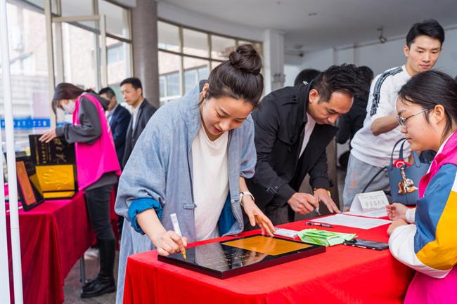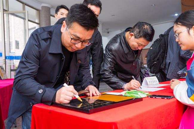 濮存昕接过“1111”人才计划培养对象代表敬上的香茗,正式“重磅加盟”,欣然应邀担任“1111”人才计划特邀首席导师。