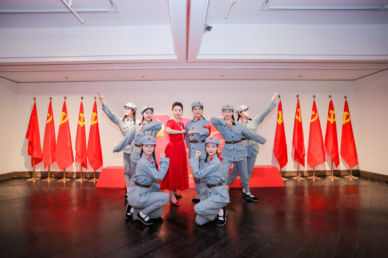 为传承红色基因、赓续精神血脉,讴歌中国共产党一百年来走过的光辉历程,在中国共产党百年华诞即将到来之际,在浙江赛丽美术馆“百年辉煌 伟大复兴——庆祝中国共产党成立100周年优秀作品展”开幕上,我校师生以嘹亮的歌声、优美的舞姿献礼建党百年。其中,戏曲学院教师吕静带领学生们演出的越剧新唱《为女民兵题照》,重温了革命先辈用理想和信念丈量的伟大征程,受到大家的一致好评。