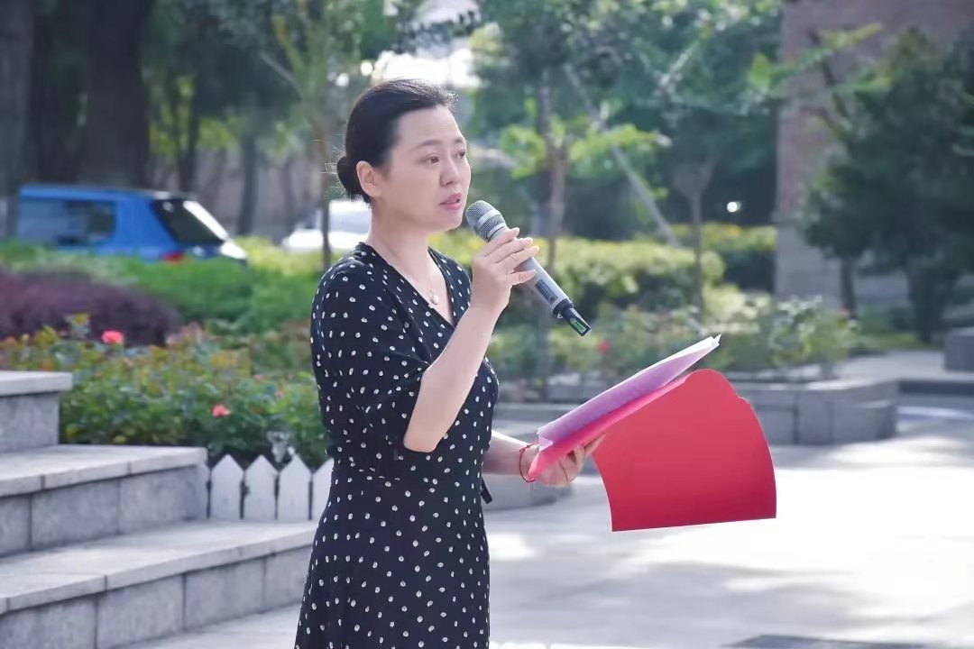 “今天的我们,目标和理想是什么?大家又想怎样实现理想、达成目标呢?”在国旗下讲话中,杨晓浤结合党史教育,希望同学们做有理想、有目标的人,既要志存高远,也要脚踏实地,要以锲而不舍、自强不息的奋斗精神把远大志向变成现实,不断增强做中国人的志气、骨气、底气,树立为祖国为人民永久奋斗、赤诚奉献的坚定理想,同时勇敢肩负起时代赋予的重任。她号召同学们要肯下苦功夫、学习真学问、练就真本领,努力在实现中华民族伟大复兴的中国梦的生动实践中放飞理想、奋发前行。