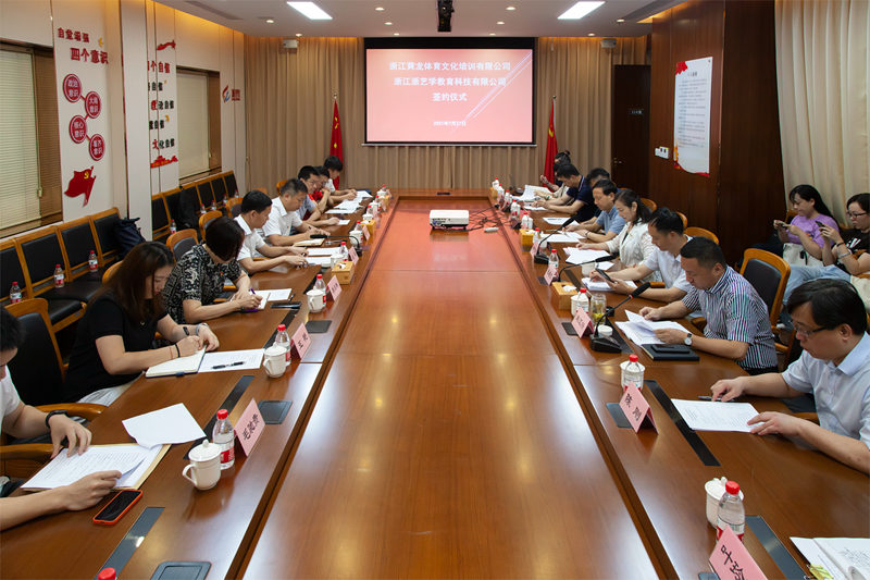 7月27日,浙江黄龙体育文化培训有限公司与浙江浙艺学教育科技有限公司在浙勤集团总部举行战略合作签约仪式,正式携手开创艺体培训新未来。