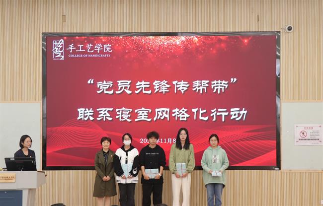 手工艺学院落实立德树人根本任务,坚持党建引领推动学院高质量发展,守牢育人初心,精心谋划,创新载体,以党建统领网格智治为重点,以“我为学生办实事”实践活动为依托,聚合网格长、网格员、联系党员“三位一体”网格力量,与资产管理处党支部、产学合作处党支部结对支部共建共促,开展“党员先锋传帮带”联系寝室网格化系列活动,深入了解学生的思想、学习和生活情况,筑构师生服务体系,着力帮助学生解决各方面问题。