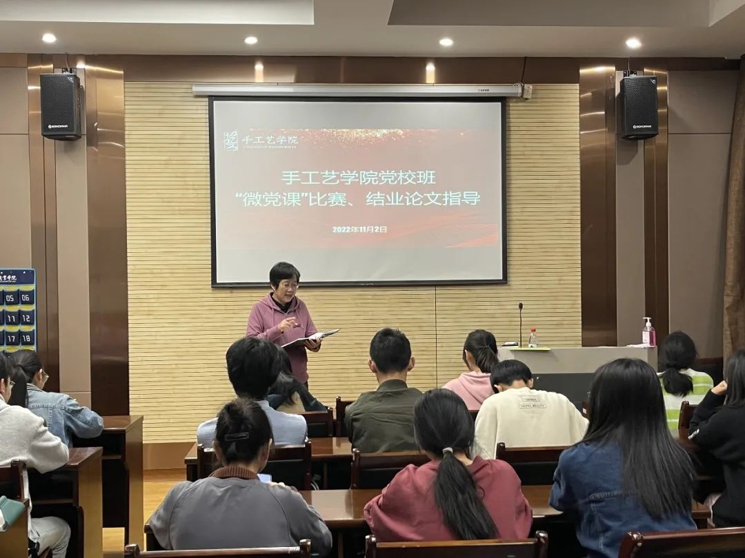 为做好手工艺学院第二届微党课比赛准备工作,11月9日学院组织开展微党课比赛初选赛,根据每位选手课件内容的可塑性、言语用词的规范性、吐字归音的准确性及稿件内容的熟练度等,逐一提出了针对性的意见和要求,让参赛选手高效率、高质量掌握微党课的比赛技巧。