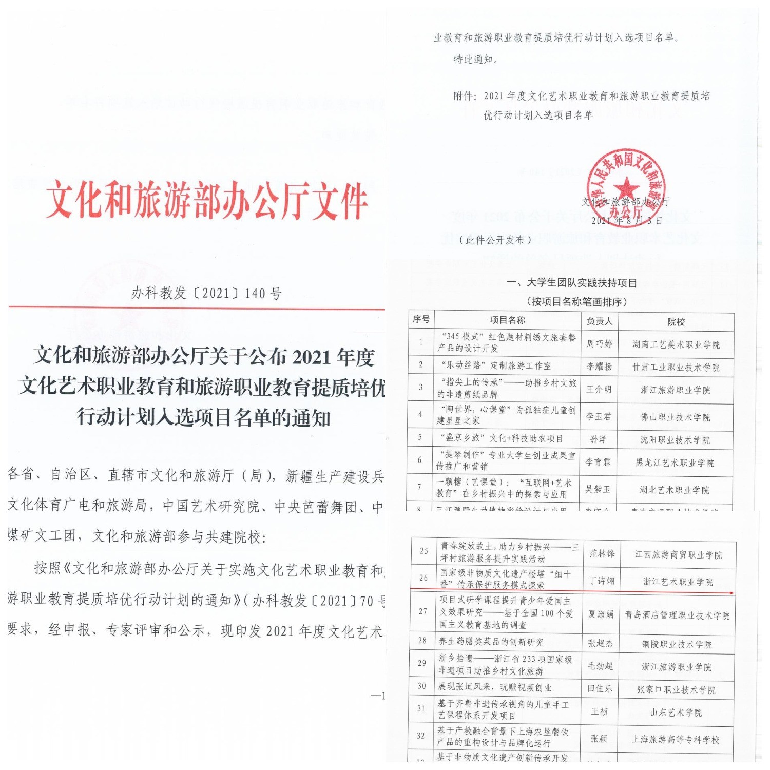 在萧山区楼塔镇,师生连续五年为国家级非物质文化遗产“楼塔细十番”搭建起“老中青”三代结构合理的传承人梯队;在丽水市松阳县,青年师生用暑期社会实践将戏曲“科班”教学送到留守儿童身边,把松阳高腔的韵致之美永刻于影像之中;在云南省东川县,青年师生用新设计理念、新广告模式焕活农产品销售思路……在社区居家养老工作中、在疫情防控第一线、在市区文明宣贯课堂上,浙艺青年用志愿服务书写着新时代的担当。而在参与服务、投入实践、沉进民生、拥抱社会的过程中,浙艺青年的社会责任感显著增强,家国情怀得到激发,一大批创新创业成果也在服务实践过程中产生,连续获得浙江省“挑战杯”创业计划竞赛一等奖、职业规划大赛一等奖等荣誉。