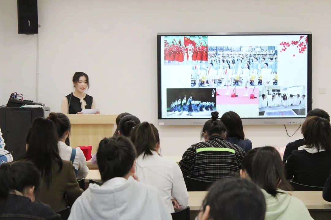 21定向班学生周璐怡,介绍了党为人民谋幸福的历程,身为未来的乡镇文化员,要锤炼本领,奋斗青春。