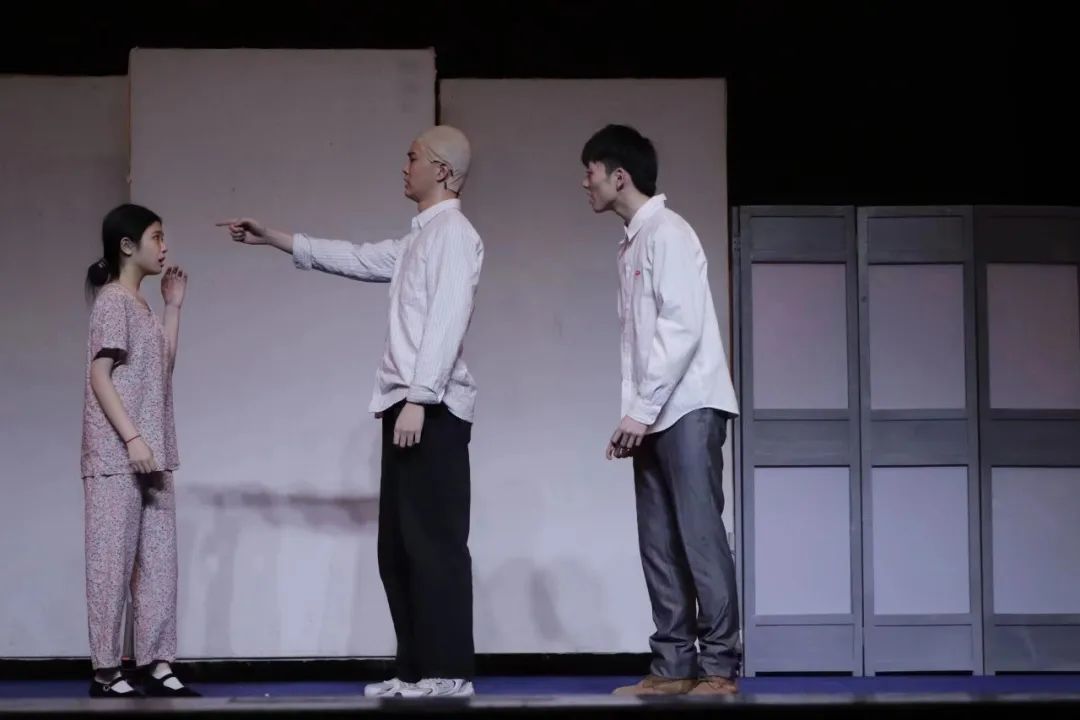 三位演员叙述了主人一次次损失头发的故事,但背后代表的,是天天加班、压力过大的当代职场人群像,隐喻了现代人的高压工作环境。