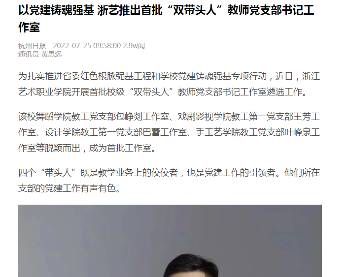 杭州日报:以党建铸魂强基 浙艺推出首批“双带头人”教师党支部书记工作室