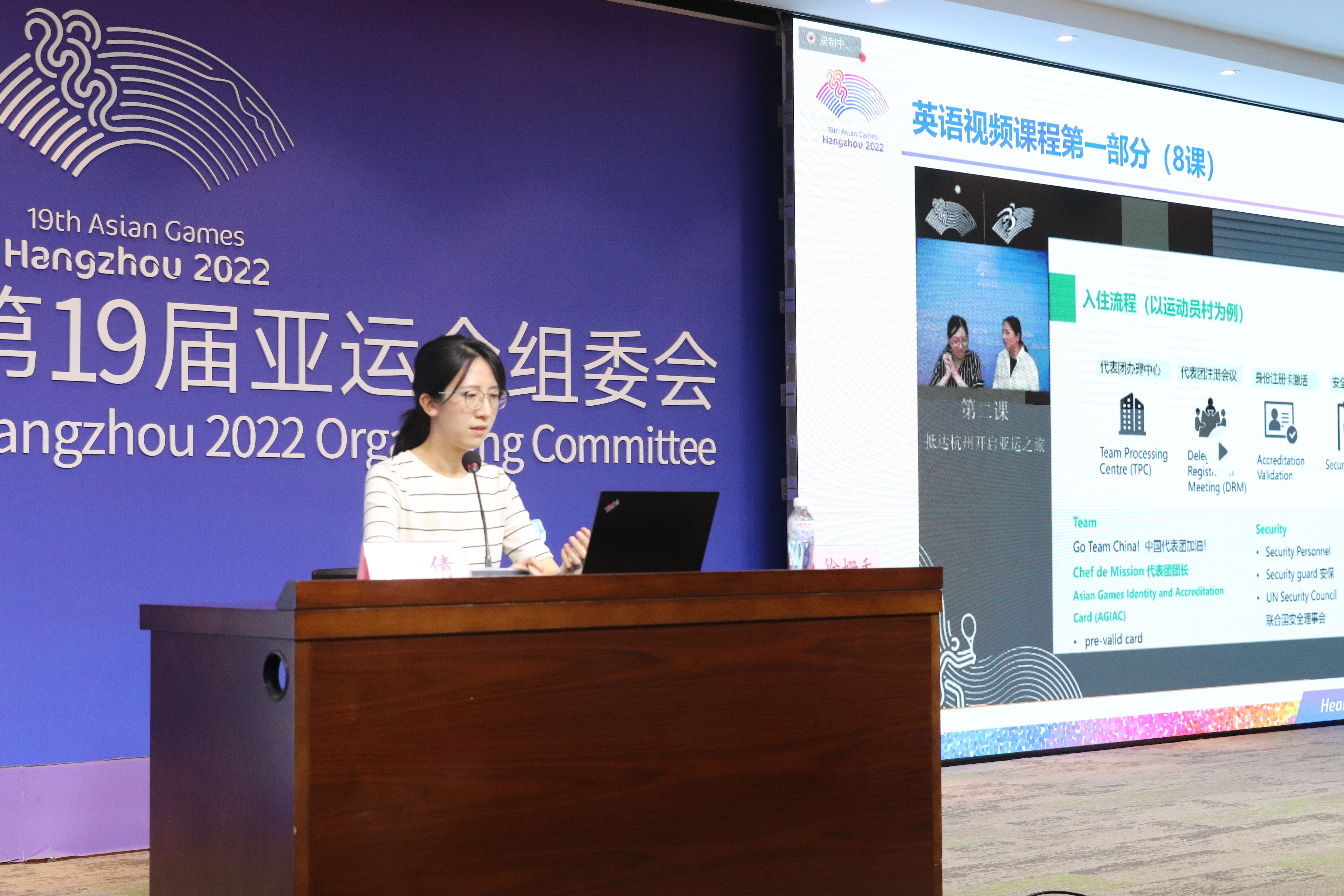 进入亚组委工作,我一直觉得很荣幸。8月18日到岗后,主要进行了两方面的工作:一是相关礼仪的培训,二是承担了WADA(国际反兴奋剂委员会)和CAS(体育仲裁)人员的抵离信息的输入。虽然人数并不多,但是每一位宾客的信息需要从各渠道获得,加上长时间盯着电脑上的表格,眼睛疲劳容易眼花,最后还是回归到最古老的方式:把每一位宾客信息一条条写在本子上,随时可以查看。随着宾客到达的日子临近,生怕自己的录入有误,因此每天上网检查这35位宾客的信息,直至倒背如流才安心。8月22日,我负责的贵宾到达,是国际反兴奋剂委员会的主席秘书,一位谦和、客气的宾客。我负责他在亚运会期间的出行、食宿、观看比赛等安排。主席秘书非常随和,对助理工作完美配合,让我的接待工作快乐且有成就感。亚运服务是一段别样的体验。来自各高校的老师此时都是同一战壕的战友,互相帮助解决突发情况,分享彼此的经验,克服各种困难。与其说是我服务了亚运,不如说是亚运服务给了我广阔的世界, 为杭州,为中国感到自豪!