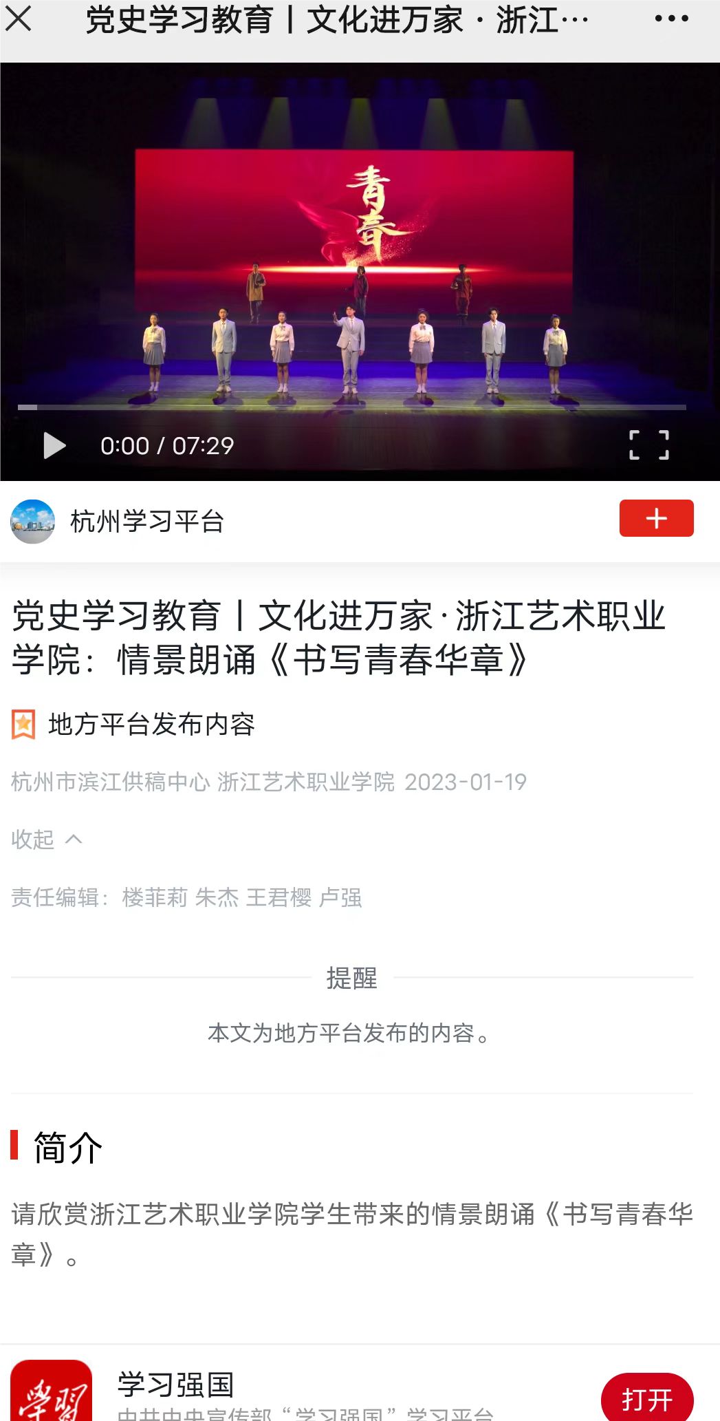 https://article.xuexi.cn/articles/index.html?art_id=33340208437450954&cdn=https%3A%2F%2Fregion-zhejiang-resource&study_style_id=video_default&reco_id=102096c2f23dc0a822a6001n&share_to=wx_single&study_share_enable=1&study_comment_disable=1&ptype=0&item_id=33340208437450954&pid=&source=share