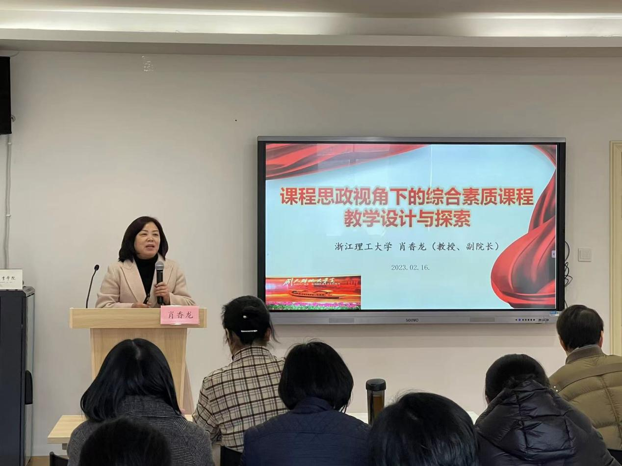 第二天开展课程思政教研能力提升讲座。肖香龙以《课程思政视角下的综合素质课程教学设计与探索》为题,通过解读课程思政的概念,分析了课程思政建设的逻辑思路和课程教学的主要任务。她指出,课程高质量建设的核心要义是构建高层次的人才培养体系,同时结合申报书案例对课程思政教学建设项目的申报和研究,从主旨凝练、元素挖掘、教学设计、评价体系等方面进行了详细的分析。